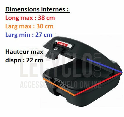Le top case vĂ©lo Citybox GTA de Klickfix est un coffre de transport Ă©tanche, robuste et sĂ©curisĂ© pour transporter 22 litres d’accessoires volumineux Ă l’abri des regards et des intempĂ©ries. Le Citybox mesure 44 de long x 34.5 de large x 23 cm de haut Ă l’arrière / 17 cm Ă l’avant (cĂ´tĂ© selle) et offre assez d’espace pour ranger un casque, une veste, un antivol, avec d’autres accessoires jusqu’Ă 10 kg pour votre balade.